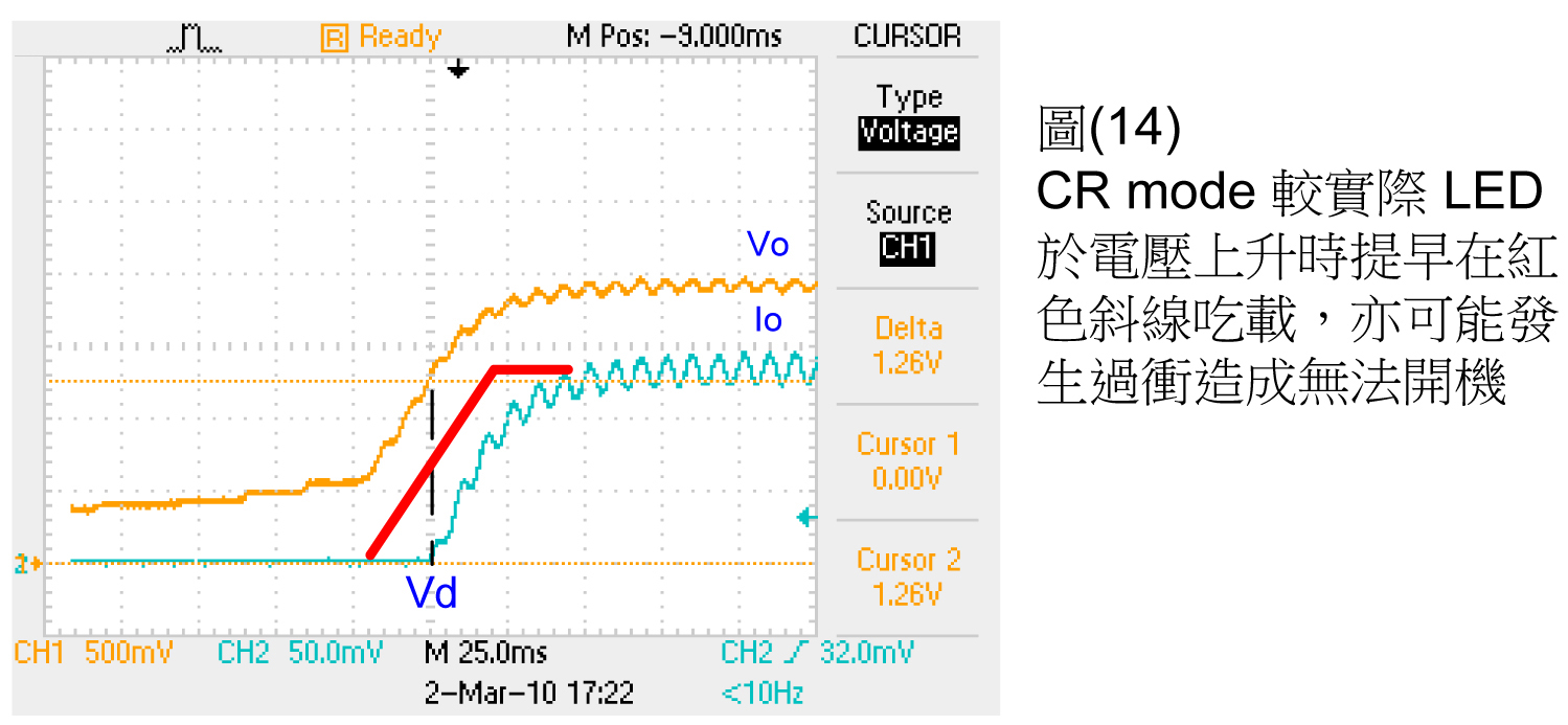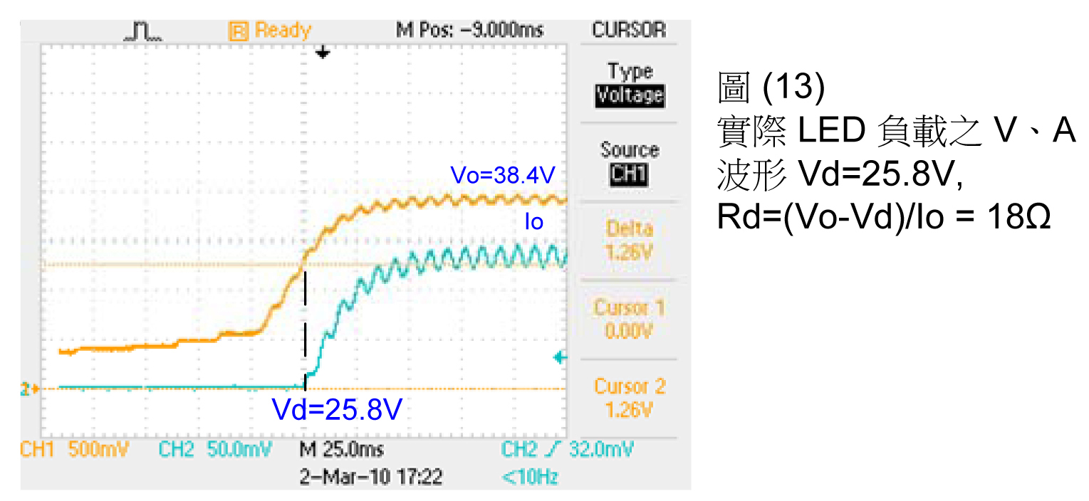 1.3 為 LED driver 定電流源 Io 有漣波時,則 LED 端電壓亦會產生 Io‧ Rd 的漣波電壓.(一般為高的三角波)。