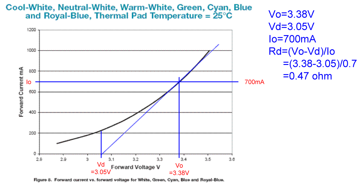 6.2 不同廠牌、規格的 LED 有不同的 Vd, Rd。