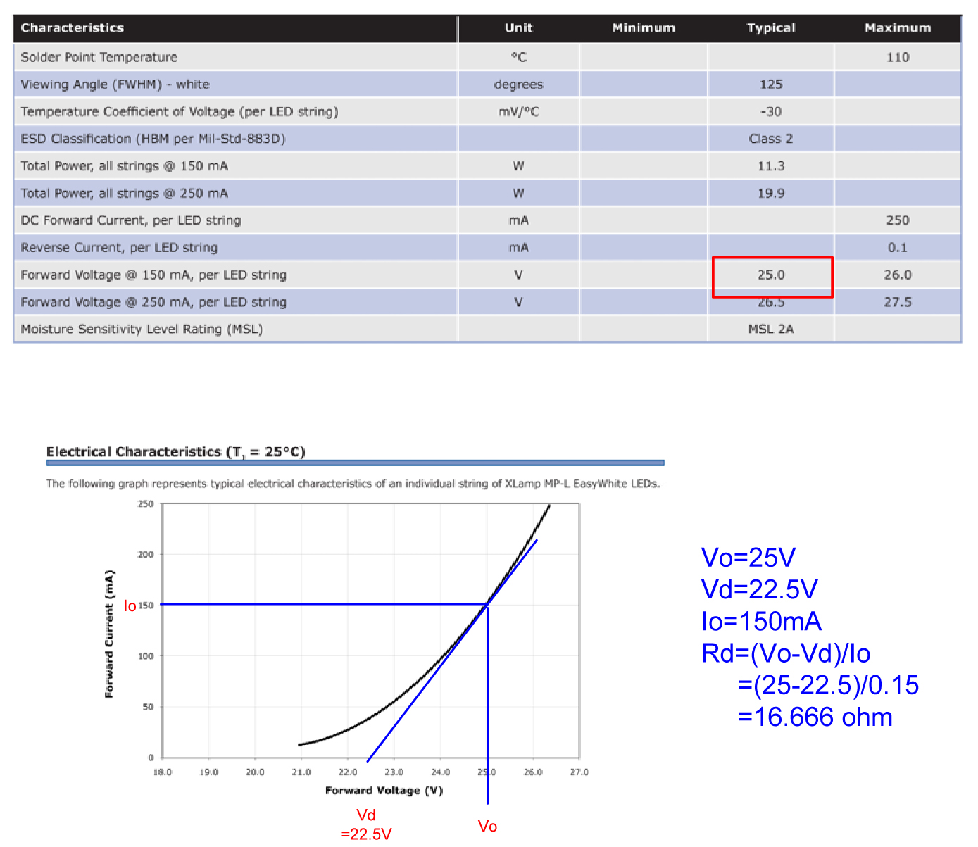 依 CREE LED 特性曲限設定 Vd=22.500V